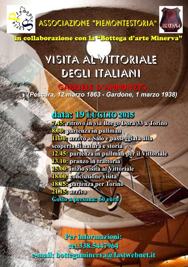Gabriele D’Annunzio [1863-1938] è stato un grande protagonista della letteratura, della società e del mondo politico-militare italiano. Visitare la sua ultima residenza, la villa sopra Gardone Riviera (Bs) chiamata il Vittoriale, è come fare un tuffo in un mondo a sé. Un concentrato di bellezza, eleganza, spirito di libertà e senso dell'avventura. Piemontestoria, in collaborazione con Bttega d'Arte Minerva, organizza una visita a questo grande monumento della storia italiana per il 19 luglio.